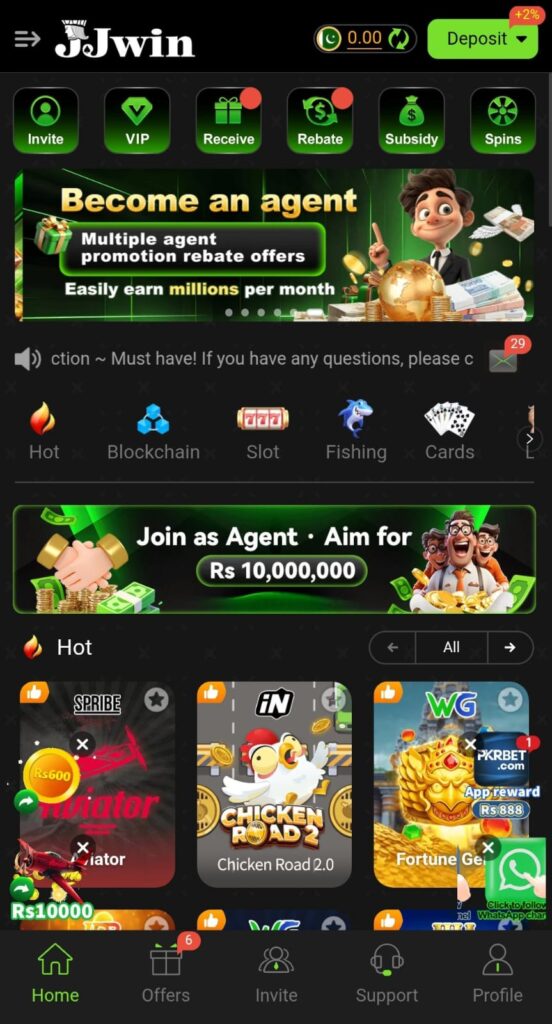 JJWin platfrom comes with several useful features that make it attractive for users. One of its biggest strengths is its clean and simple interface. All important sections like games, wallet, deposit, and withdrawal are clearly visible, making navigation easy even for new users.